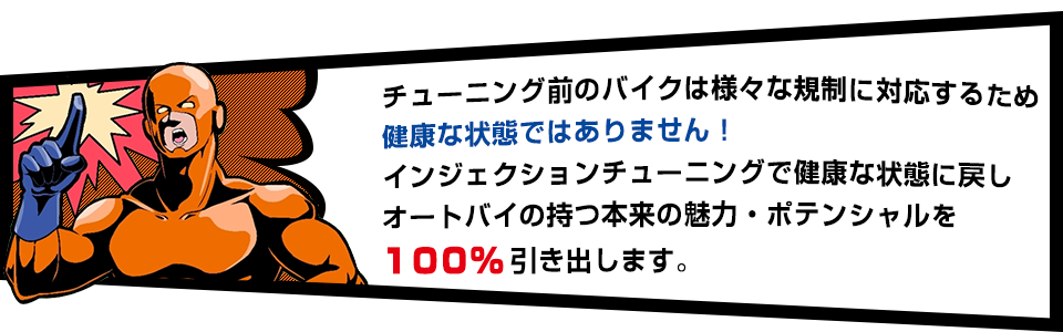 アイドル回転数を適正の数値に不要なアフターファイヤーをなくすことで